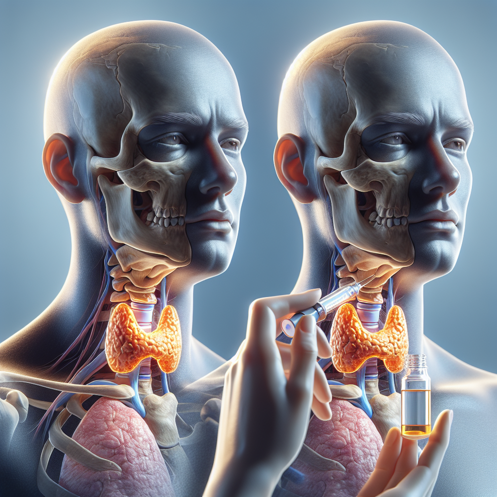 iodine molecule overlay beside thyroid gland anatomy with hormone synthesis pathway, clinical editorial style